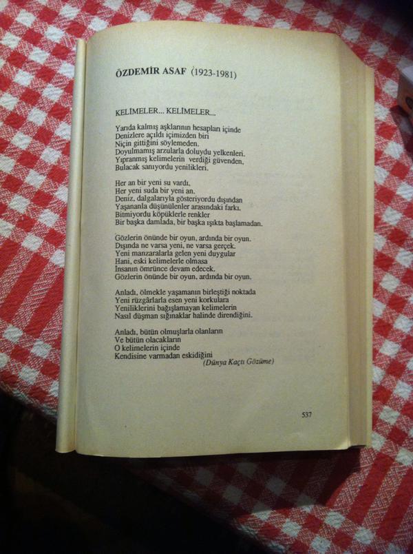 Dünya kaçtı gözüme türkiye iş bankasi kültür yayinlari özdemir asaf bir ışık düşürse üstüne basma. Tümü bugün özdemir asaf ın ilk şiir kitabı. Sevmekten hiç borçlu çıkmayan şairin ikilikler ve dörtlüklerden oluşan ilk şiirlerinde yoğun bir söyleyiş özelliği göze çarpar. 1930 yılında galatasaray lisesi nin ilk kısmına girdi.