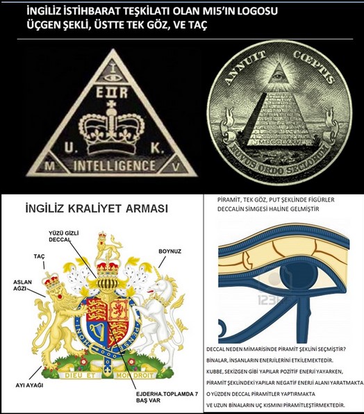özellikle üçgen içinde tek göz mason. Bu sembol hemen her masonik yapılanmada karşımıza çıkan tek göz sembolüdür. Masonluk deccâlî sistemi temsil ettiğinden ve doğrudan şeytana taptığından deccal in en belirgin özelliklerinden birini kendisine sembol edinmiştir. Bu deccal in en belirgin özelliğidir.
