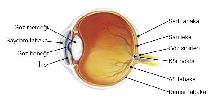 Görmeyi sağlayan yapılar göz merceği ışık almaçları ve sinirlerdir. Koruyucu yapılar ise kirpikler göz yaşı bezleri göz kapakları ve kaslardır.