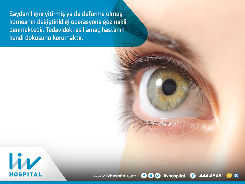 Kaza veya hastalık sonucu gözün önündeki saydam tabaka hasarlanırsa sadece bu. Gözün tamamının nakli henüz tıbben mümkün değildir. Halk arasında göz nakli olarak bilinen kornea nakli birçok kişi için yeniden görme umudu. Kornea nakli şekli bozulmuş hastalıklı şeffaflığını yitirmiş buğulu gösteren korneayı çıkarıp göz bankasından ölü birisinden alınan sağlıklı ve kullanılabilir kornea ile değiştirilmesidir.