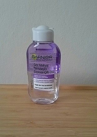 ürünlerin yüksek alkol oranına sahip olmaması cilde zarar vermemesi önem taşır. Suya dayanıklı makyajı bile gözlerde yağlı bir kalıntı bırakmadan temizler. Göz makyajı temizleme işini en kolay hale getiren en zorlu ve suya dayanıklı maskaraların bile saniyeler içinde kalıntı bırakmadan çıkmasını sağlayan garnier göz makyaj temizleyici express çift etki çift fazlı bir temizleyici. Garnier göz makyaj temizleyicisi express çift etki 125 ml.