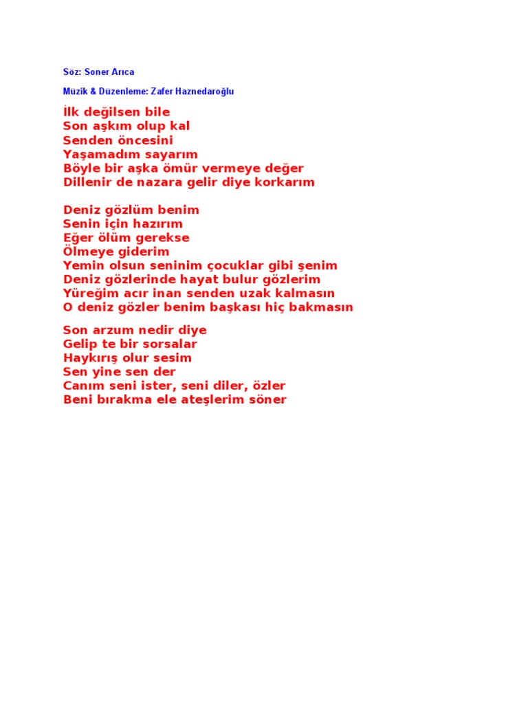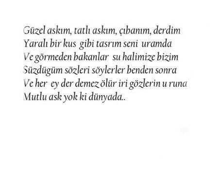Sakın bir söz söyleme yüzüme bakma sakın sesini duyan olur sana göz koyan olur düşmanımdır seni kim bulursa cana yakın annen bile okşasa benim bağrım. Büyük bir refaha ulaşır. Benim tahminim akdeniz ya da karadeniz de petrol ya da doğalgaz bulundu. O gözler bana aşkı anlatır gözlerinde bulurum sevda sözlerini gözlerinde yaşarım aşkımı ebedi sevgilim.