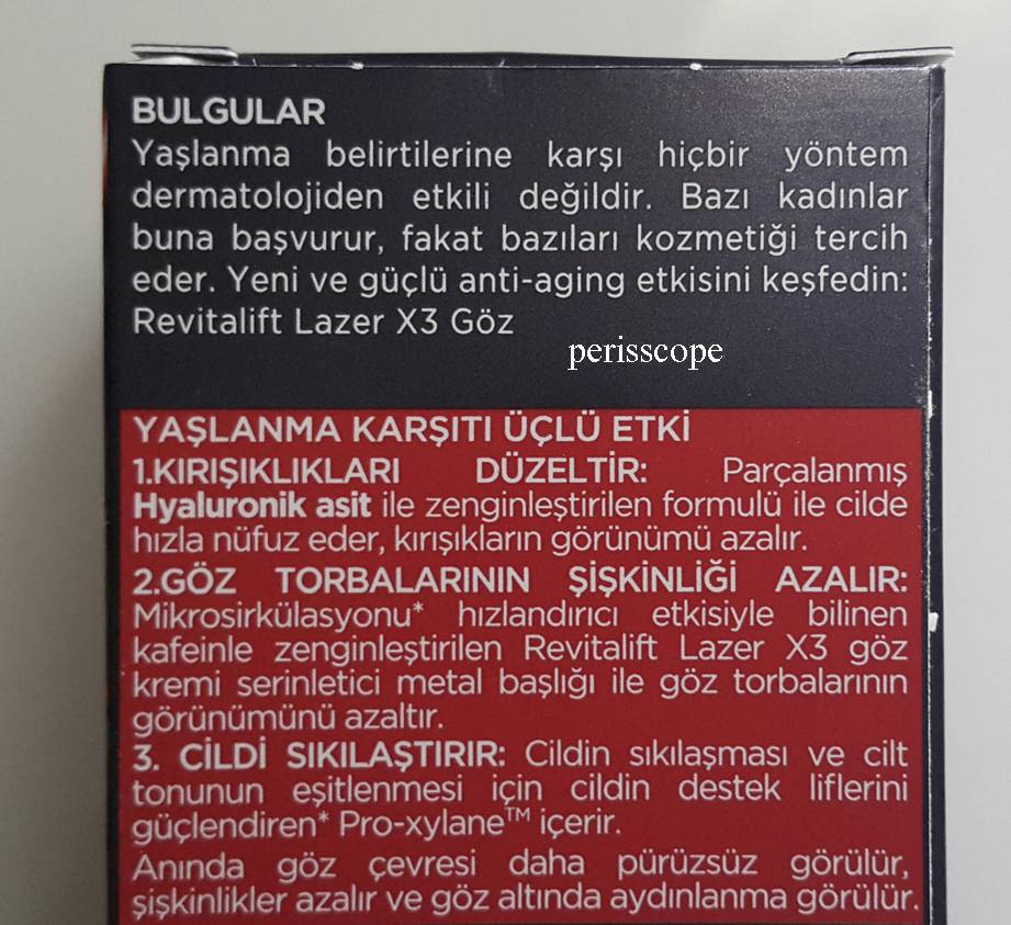 L oréal paris revitalift lazer x3 kırışık karşıtı gündüz bakım kremi kullananlar. Loreal paris tarafından üretilen l oréal paris revitalift lazer x3 kırışık karşıtı gündüz bakım kremi ürünü 50 indirimli fiyatıyla 114 90 tl yerine 57 10 tl olarak as kozmetik firması tarafından satılmaktadır. Başta kremden olduğunu düşünemedim üç cildiye doktoru ve bir göz doktoruna gittim böyle bir firma nasıl olur da insanların sağlığını tehlikeye atacak kremleri üretir. Loreal paris revitalift kırışıklık karşıtı extra yoğun göz kremi yorum.